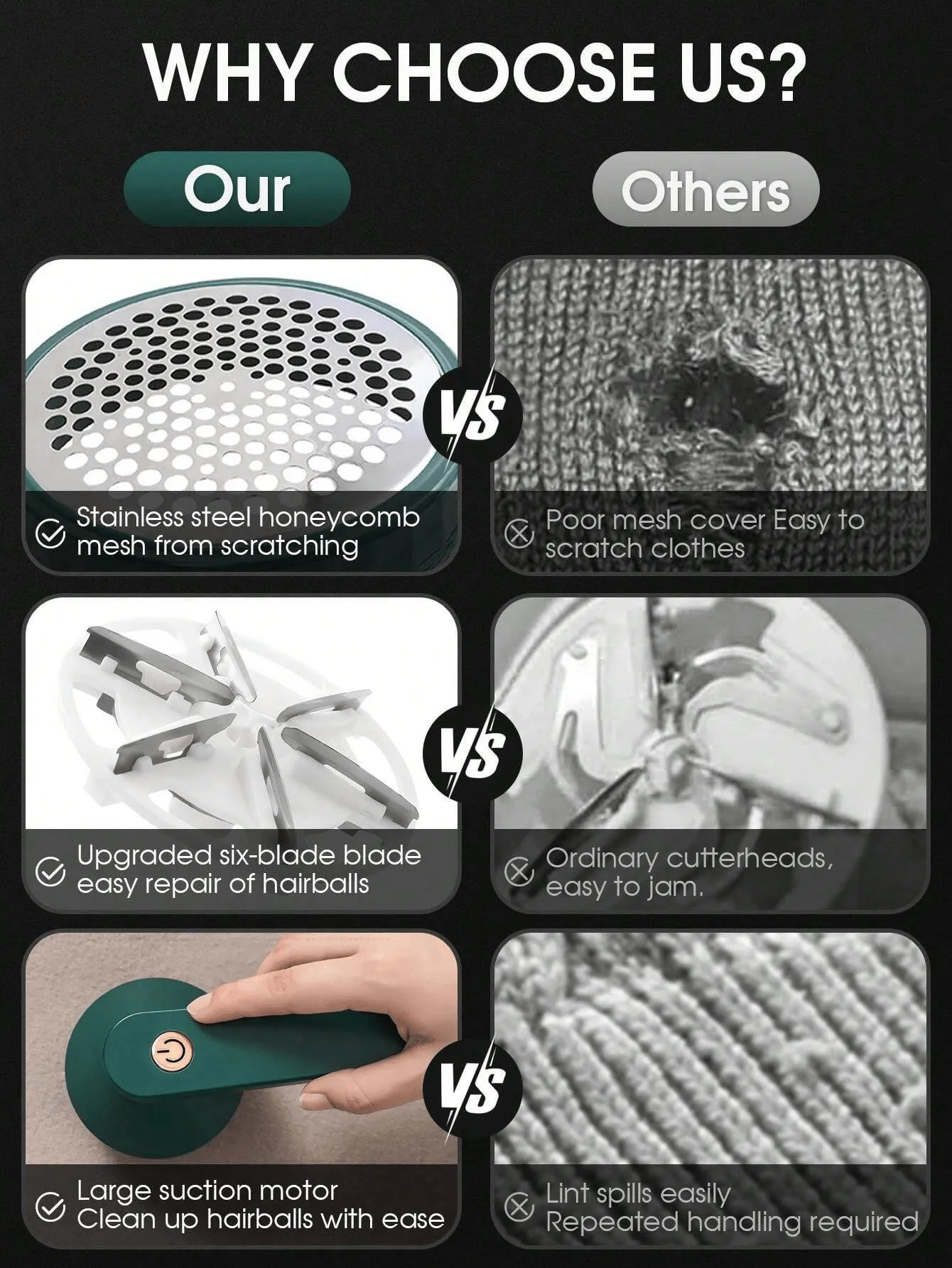 • مجموعة واسعة من الاستخدامات: تزيل بشكل مثالي  من جميع أنواع الملابس والأقمشة، بما في ذلك السترة والأريكة والبطانية والستائر والجوارب والسراويل الضيقة والصوف وما إلى ذلك.
