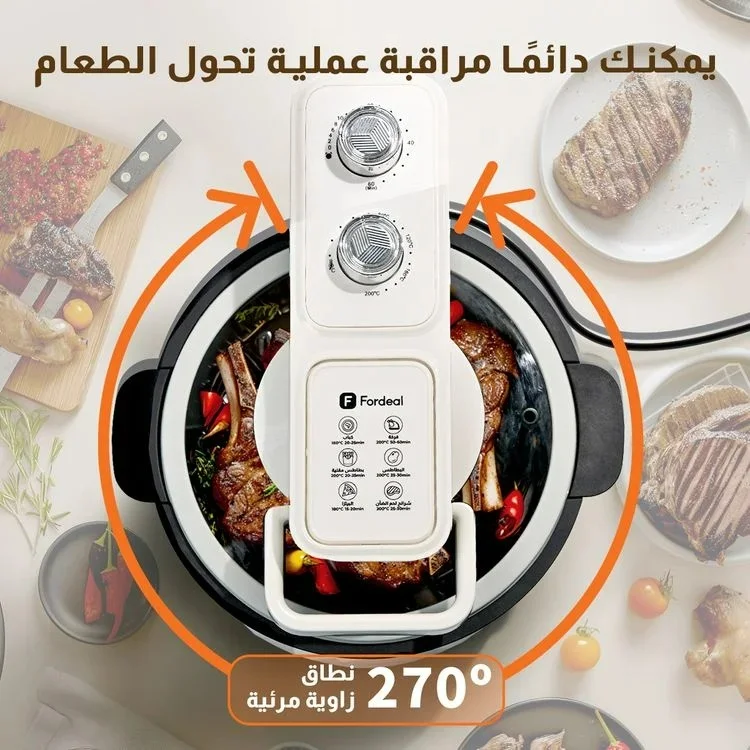 مزودة بنافذة شفافة لمتابعة الطعام أثناء الطهي دون فتح الغطاء.