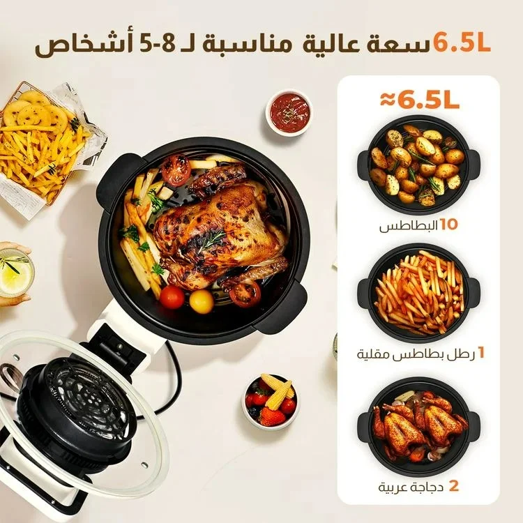 مقلاة هوائية بقدرة 1250 واط وسعة كبيرة 6.5 لتر، مثالية للعائلة.
