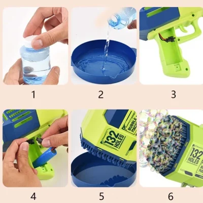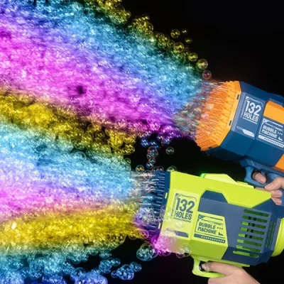 مسدس الفقاعات السحري للاطفال تمت ترقية مسدس الفقاعات بـ 70 ثقبًا ، مما يجعل الفقاعات تنبثق بكمية هائلة ويستمتع بها الأطفال. يمكنه نفخ آلاف الفقاعات في نفس الوقت.
